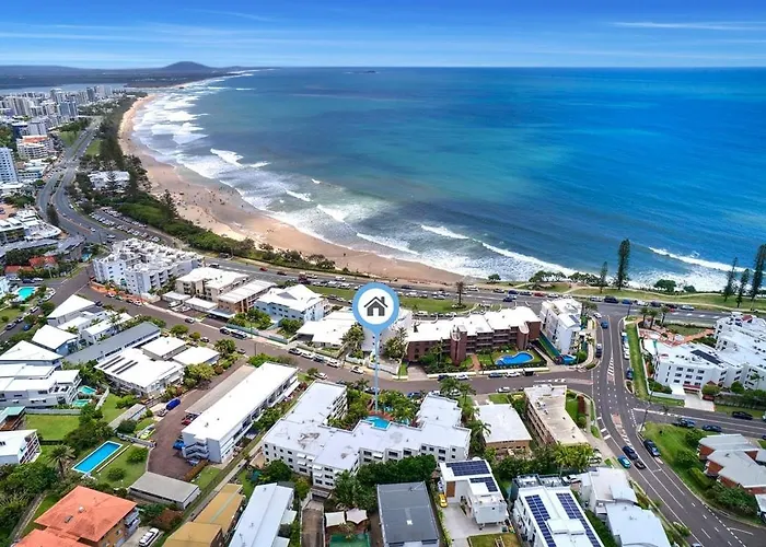 El Stylish 2Br Alex Heads Beachside Apartment Alexandra Headland, situado a tan solo 9 minutos a pie de la Explanada de Mooloolaba y el Mirador HMAS Brisbane, ofrece vistas al jardín. El apartamento cuenta con una piscina privada y una terraza para comodidad de los huéspedes.